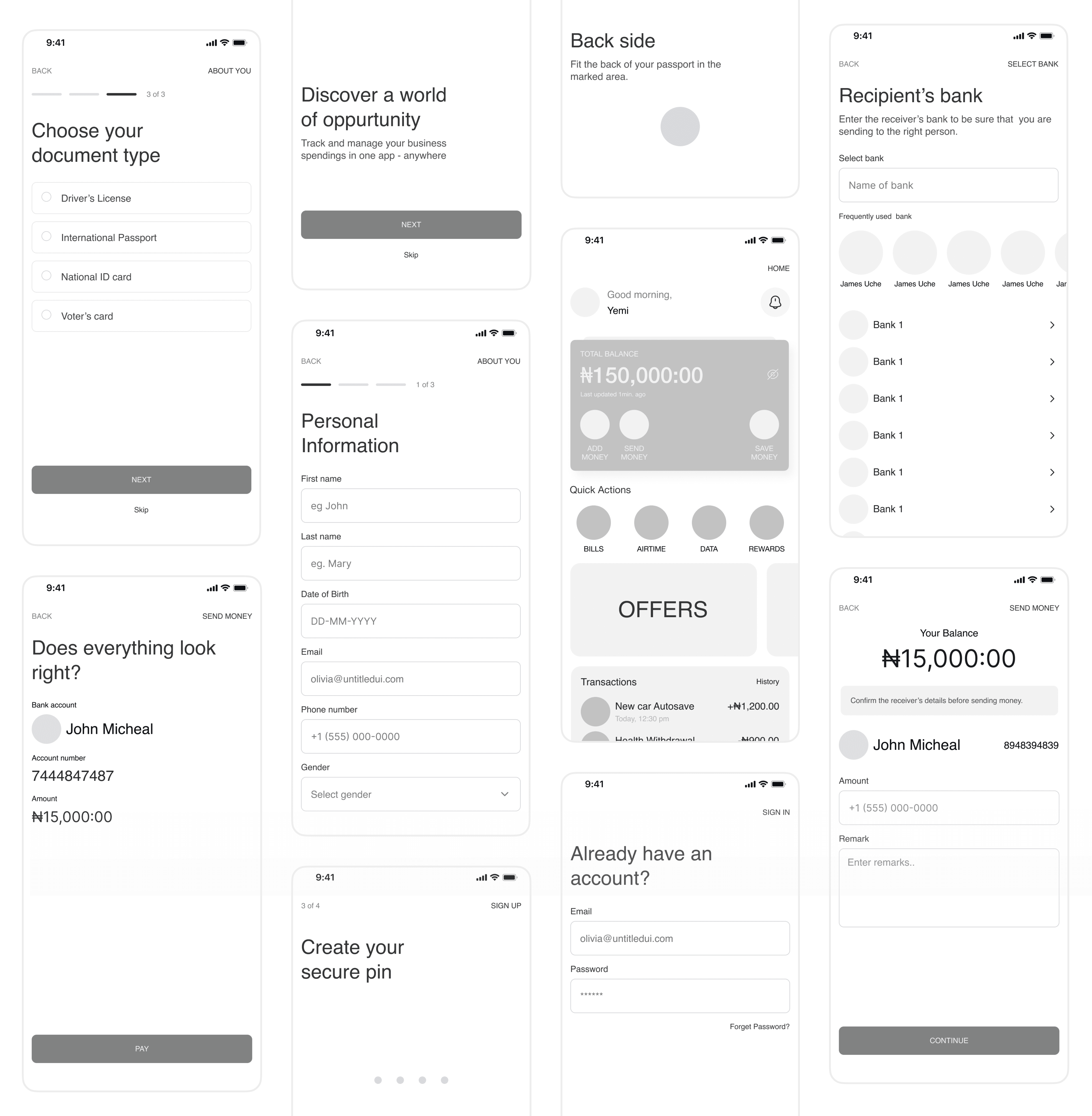 I began by listening to users and digging into their frustrations with existing financial apps. Through surveys and interviews, I uncovered key pain points around onboarding, trust, and ease of use, which set the foundation for my design decisions.