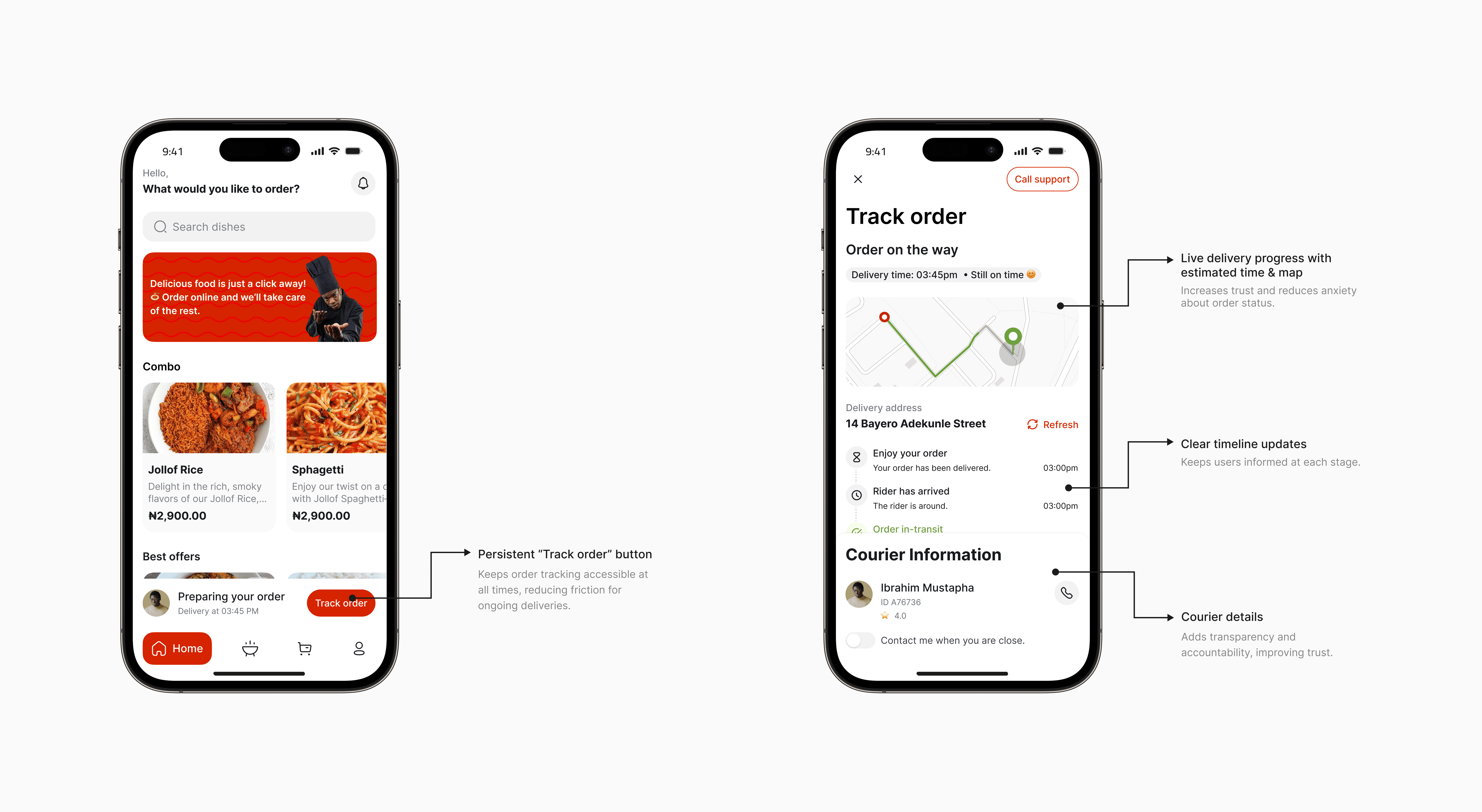 Real-time tracking keeps users informed and reassured as their meal makes its way.